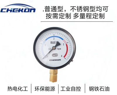 膜盒壓力表采用膜盒作為測(cè)量微小壓力的敏感元件。測(cè)量對(duì)銅合金不起腐蝕作用、無爆炸危險(xiǎn)氣體的微壓和負(fù)壓,廣泛應(yīng)用于鍋爐通風(fēng)、氣體管道、燃燒裝置等及其他類似設(shè)備上。