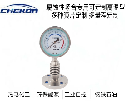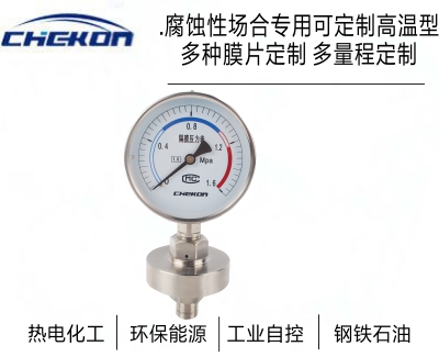 用隔離膜片將被測介質(zhì)與敏感元件分開的壓力表。