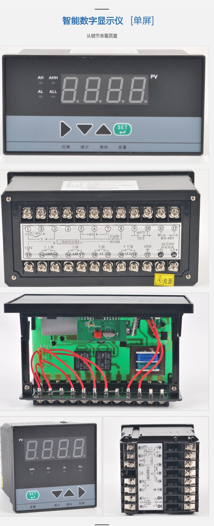 智能數(shù)字/光柱顯示控制儀,采用先進(jìn)的微處理器進(jìn)行智能控制,適用于溫度、濕度、壓力、液位、瞬時(shí)流量、速度等多種物理量檢測(cè)信號(hào)的顯示及控制,并能對(duì)各種非線性輸入信號(hào)進(jìn)行高精度的線性校正。
